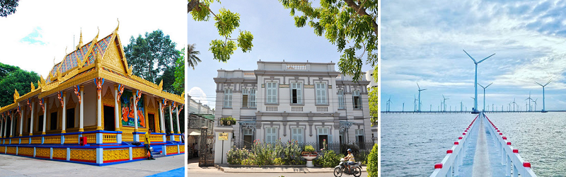 - Công Trình Điện Gió Bạc Liêu: nằm ở phía đông của Tp. Bạc Liêu, với những tuabin quạt gió khổng lồ, cảnh quan rất kỳ vỹ. Điện gió Bạc Liêu là 1 trong những nhà máy điện gió đầu tiên ở Việt Nam.