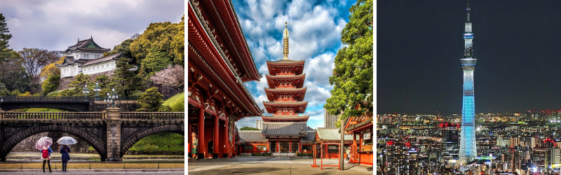 Quý khách nghỉ đêm trên máy bay. Sáng: Dự kiến 08h00 đoàn đến sân bay Narita, làm thủ tục nhập cảnh. Xe đưa Quý khách về trung tâm thủ đô Tokyo tham quan: